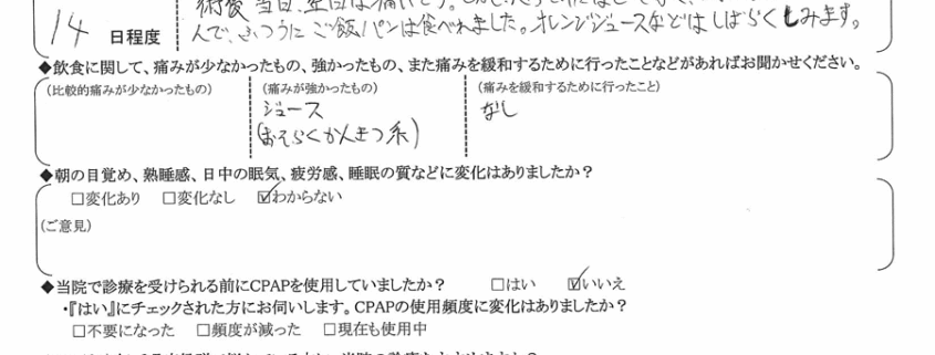 ウ、術後、いびきの音以外で気になる点はございますか?