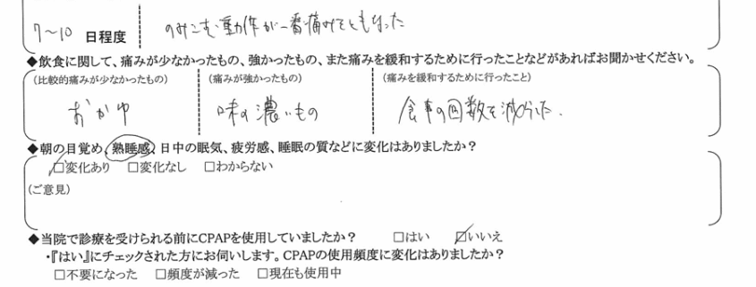 (痛みの程度について) 飲み込む動作が一番痛みをともなった。