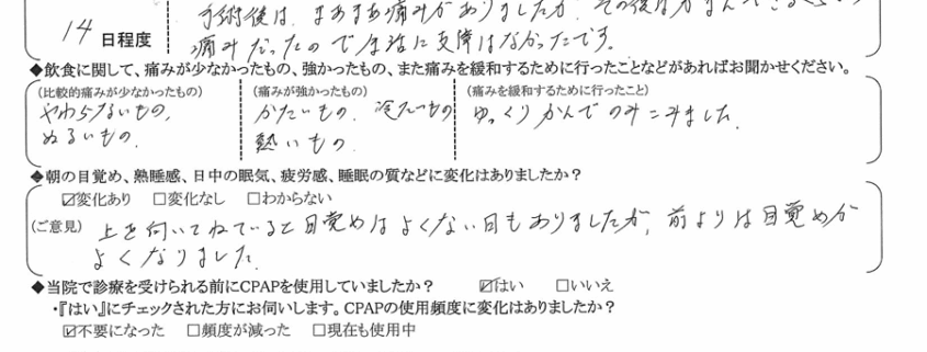 術後の患者様の感想 No.1418
