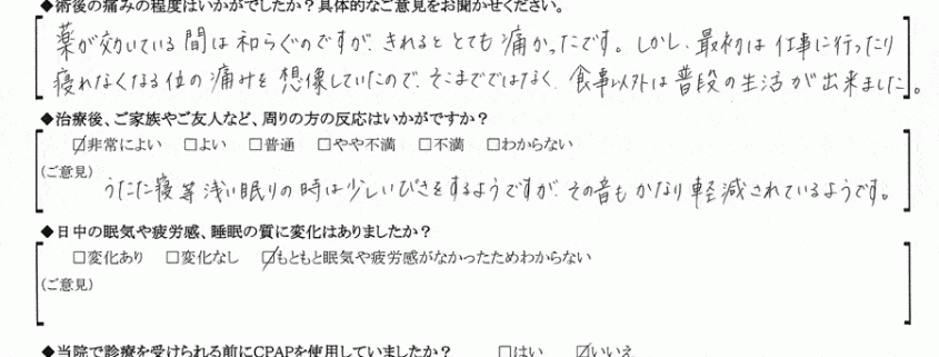 Q.術後の痛みの程度はいかがでしたか?具体的なご意見をお聞かせください。