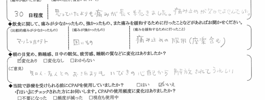 術後の患者様の感想 No.1420