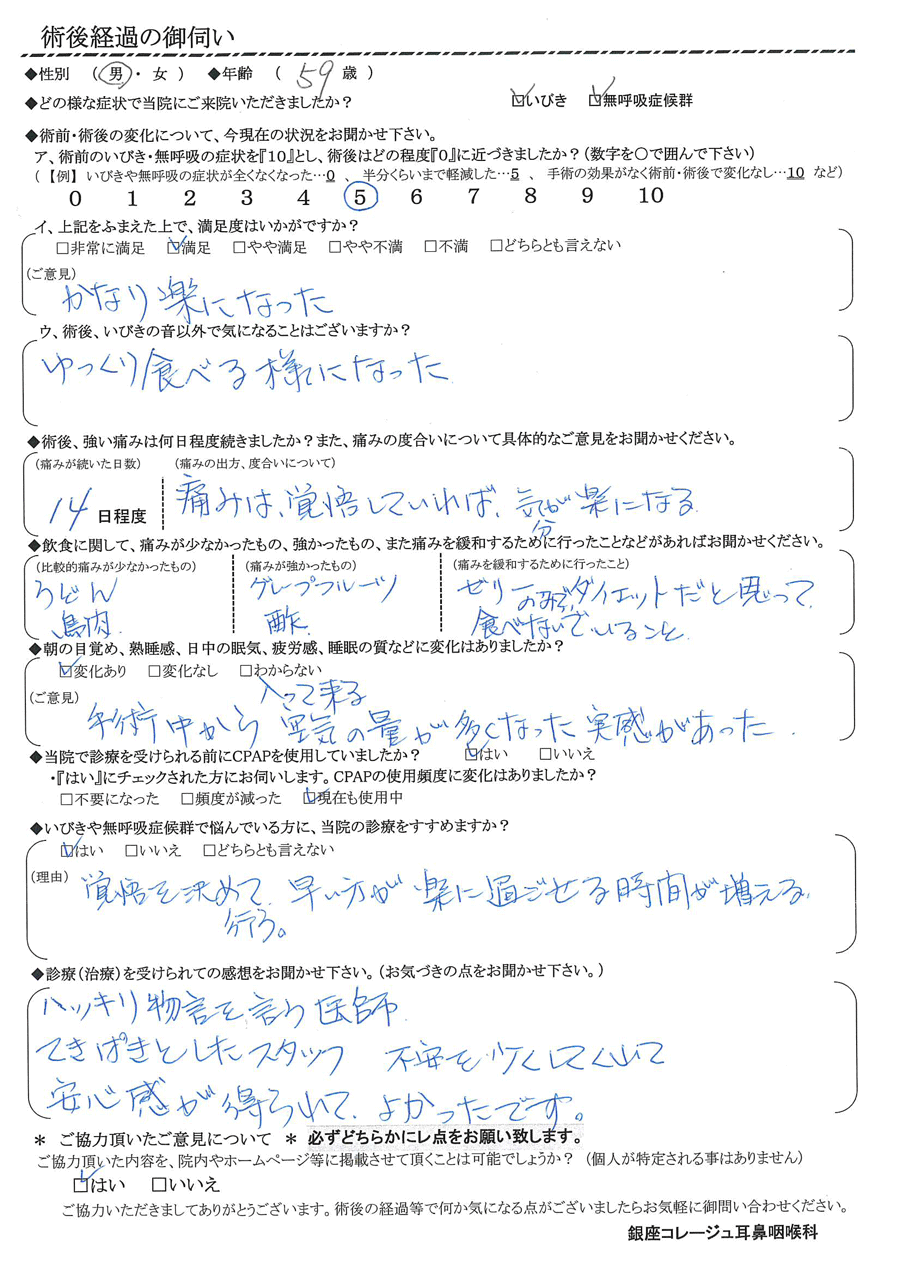 (ご意見) 手術中から、入ってくる空気の量が多くなった実感があった。