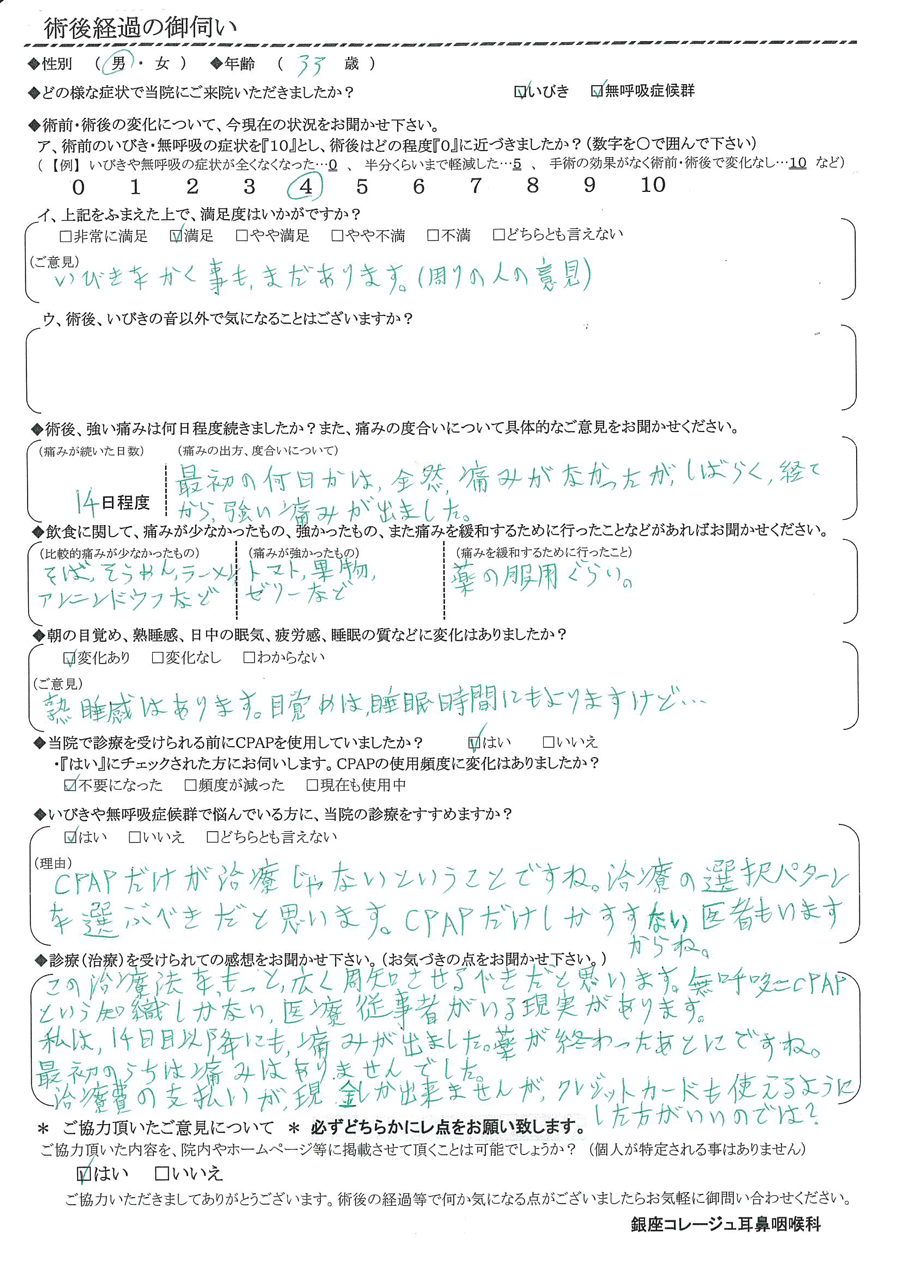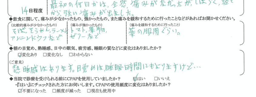 (ご意見) イビキをかく事もまだ、あります。(周りの人の意見)