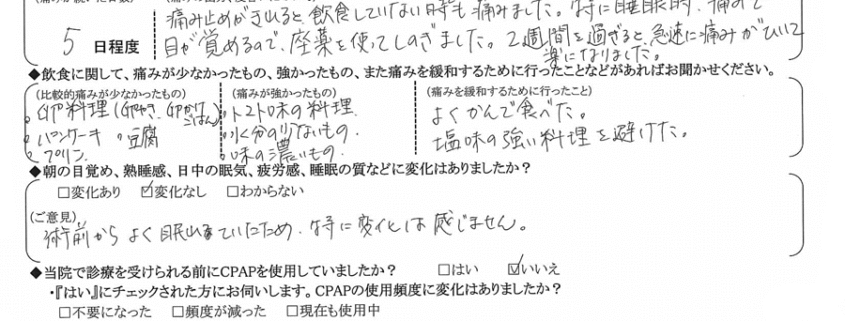 (ご意見) 術前からよく眠れていた為、特に変化は感じません。