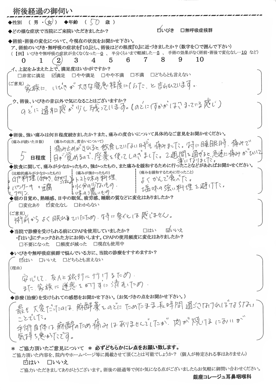 (ご意見)家族に「イビキが大きな寝息程度になった」と言われています。