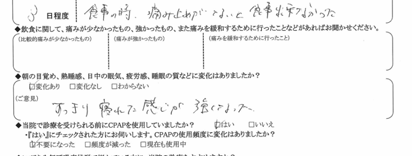 (痛みの程度について) 食事の時、痛み止めが無いと食事が出来なかった。