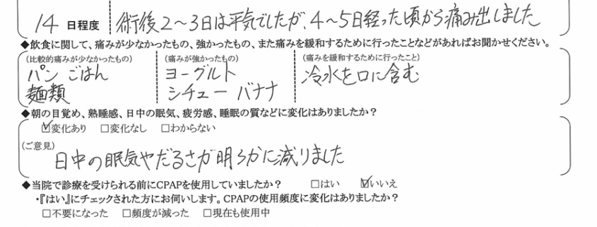 術後の患者様の感想 No.1505