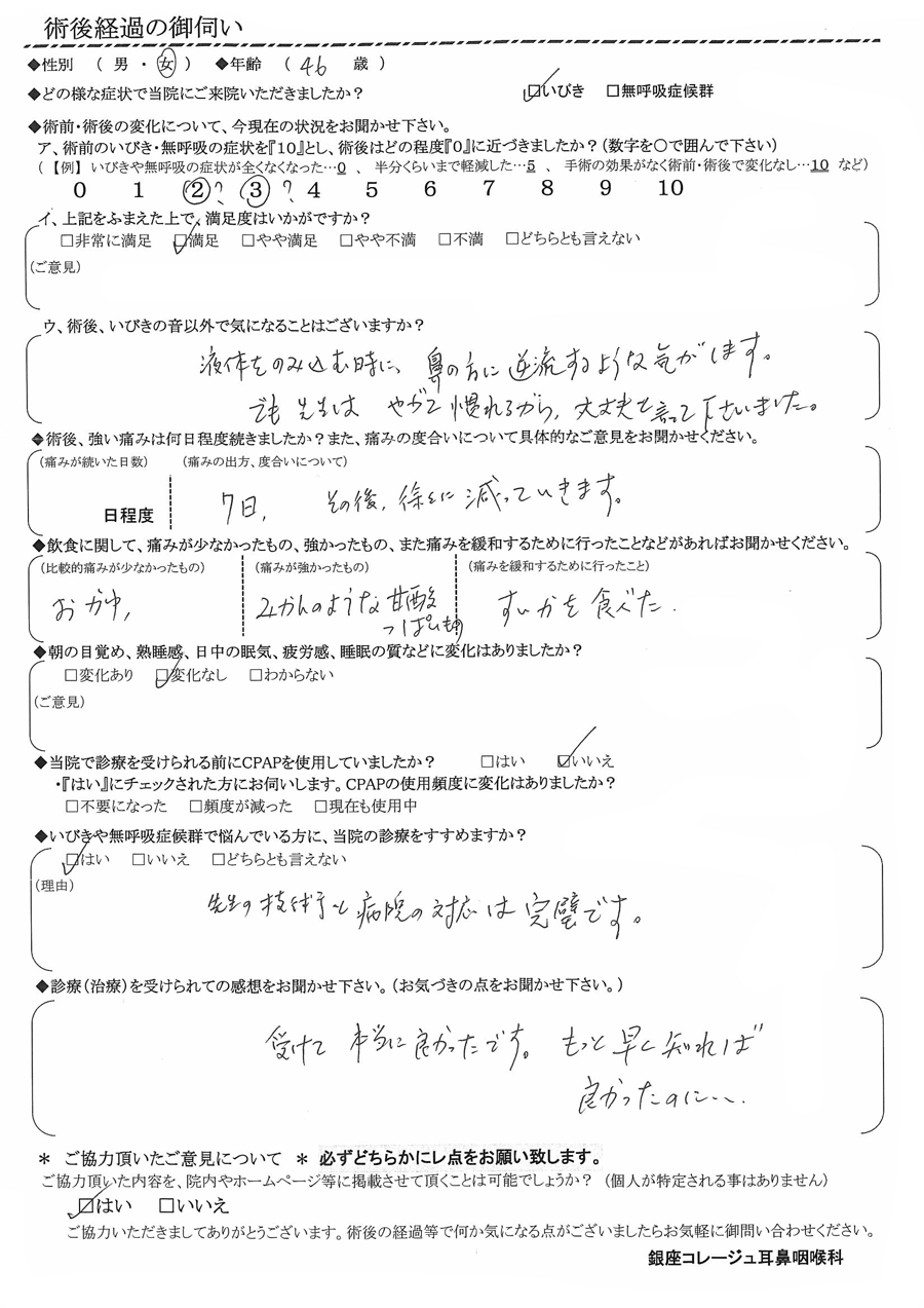 術後の患者様の感想 No.1506