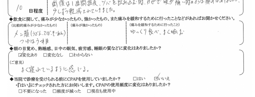 術後の患者様の感想 No.1510