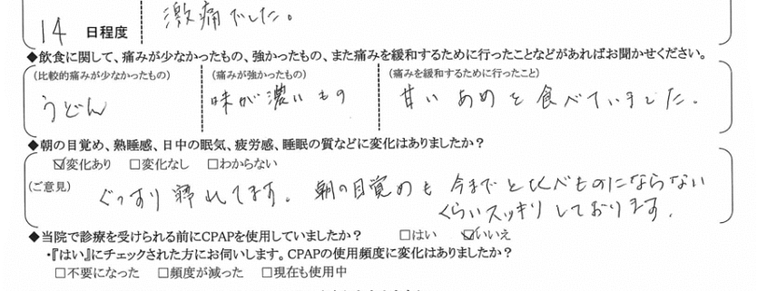 Q.飲食に関して、痛みが少なかったもの、強かったもの、また痛みを緩和するために行ったことなどあれお聞かせ下さい