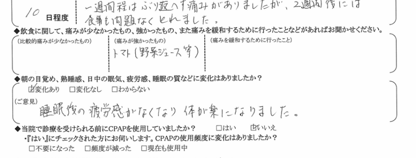 (ご意見) 睡眠後の疲労感が無くなり、体が楽になりました。