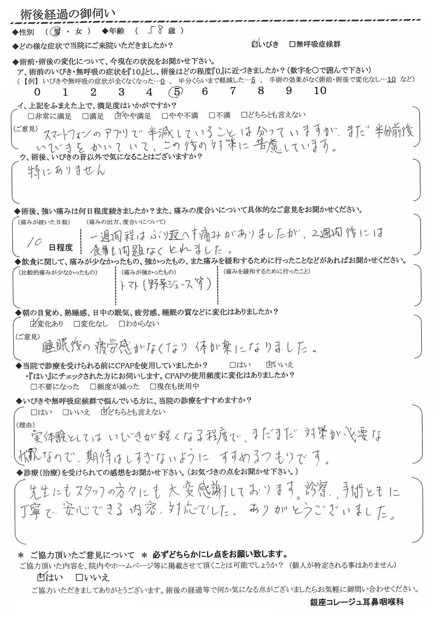 (ご意見) スマートフォンのアプリで半減している事は分かっていますが、まだ半分前後いびきをかいていて、この後の対策に苦慮しています。