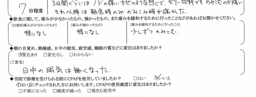 (ご意見) 日中の眠気は無くなった。