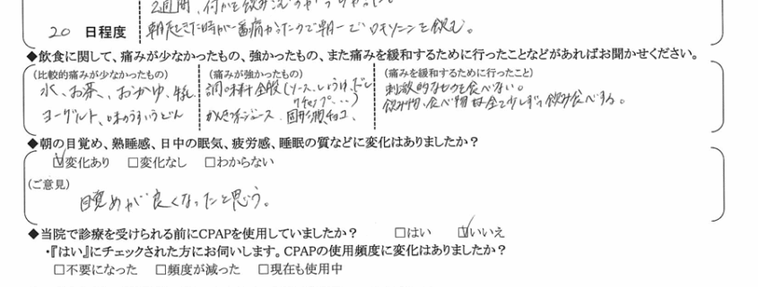 Q.飲食に関して、痛みが少なかったもの、強かったもの、また痛みを緩和するために行ったことなどあれお聞かせ下さい