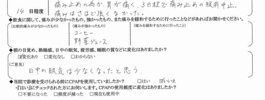 (ご意見) 日中の眠気は少なくなったと思う。