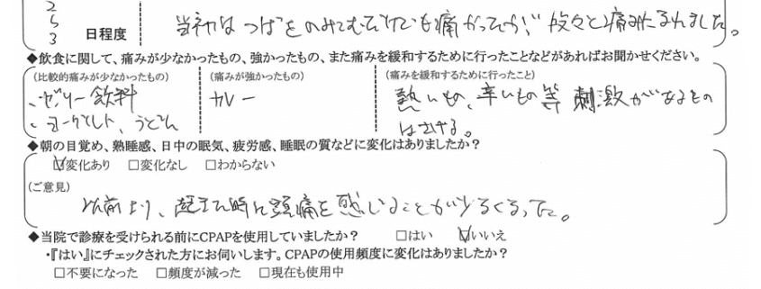 (ご意見) 以前より、起きた時に頭痛を感じる事が少なくなった。