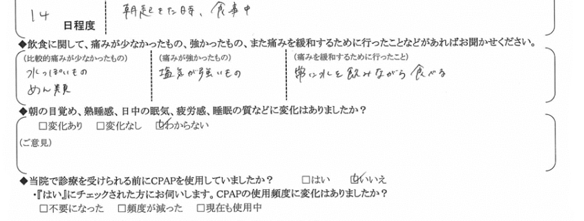 A:(痛みを緩和するために行ったこと) 常に水を飲みながら食べる