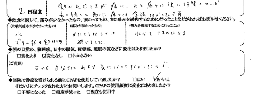 Q.飲食に関して、痛みが少なかったもの、強かったもの、また痛みを緩和するために行ったことなどあれお聞かせ下さい