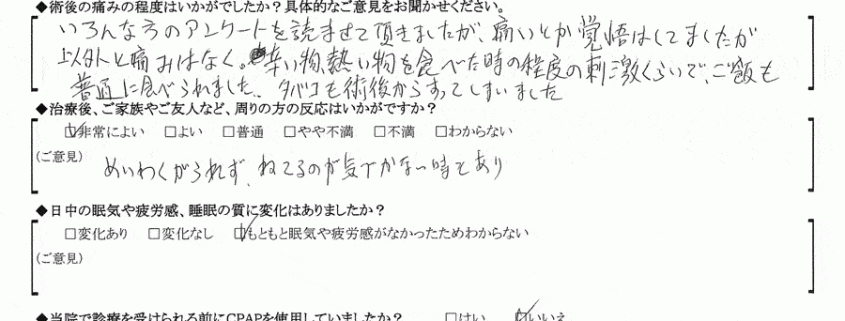 Q.術後の痛みの程度はいかがでしたか?具体的なご意見をお聞かせください。