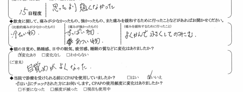 (ご意見) 会議中や電車の中でも、いびきをかいていたのが無くなった。
