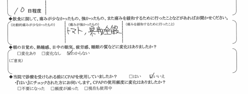 Q.飲食に関して、痛みが少なかったもの、強かったもの、また痛みを緩和するために行ったことなどあれお聞かせ下さい
