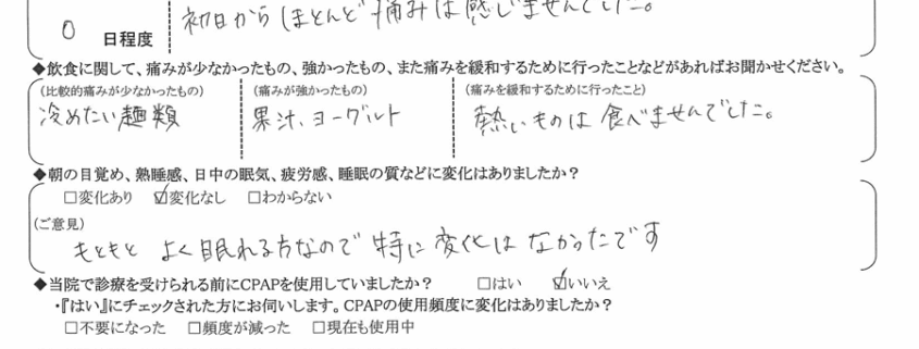 (理由) 当日の手術の痛みはありませんが、恐怖心はありました。
