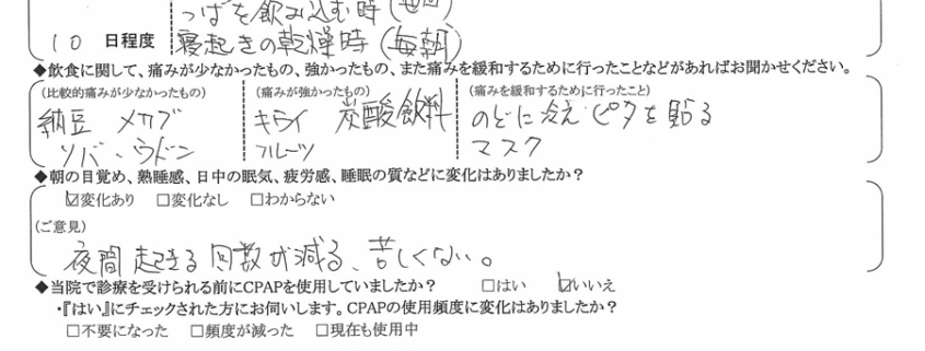 (ご意見) 夜間、起きる回数が減る。苦しくない。