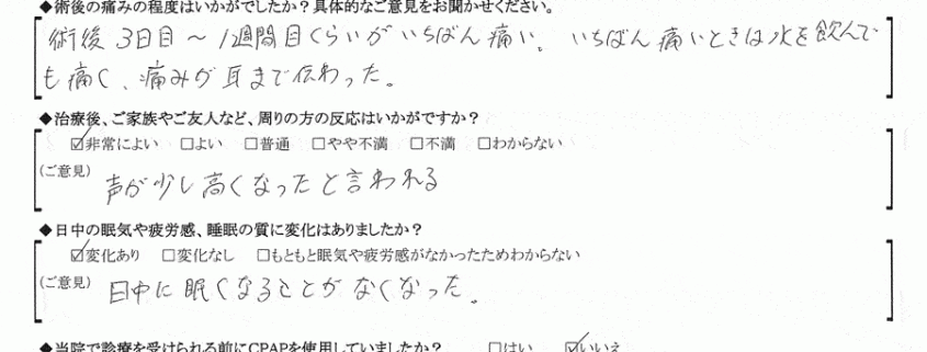 Q.術後の痛みの程度はいかがでしたか?具体的なご意見をお聞かせください。