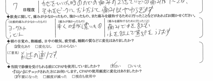 (ご意見) 術後直ぐに睡眠の質がめざましく改善しました。