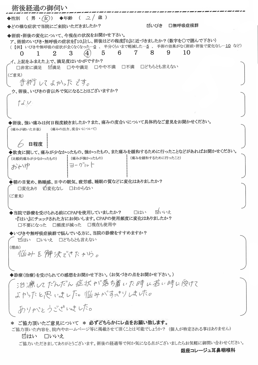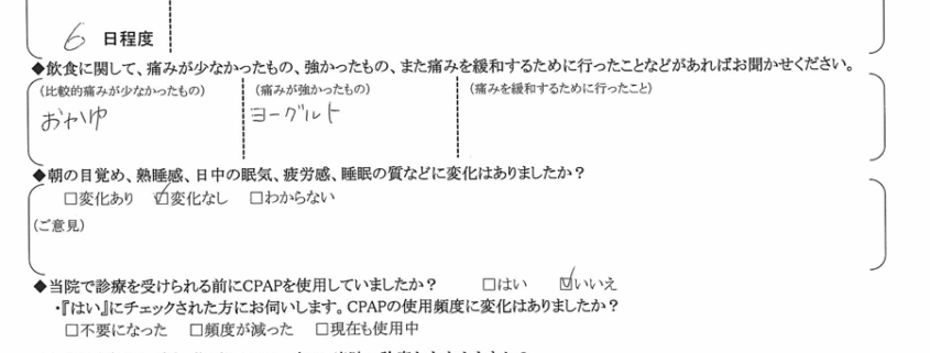 (ご意見) いびきと眠気が改善され、満足しています。