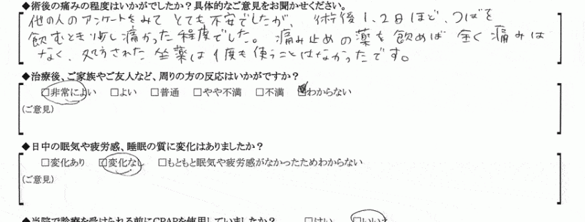 術後の患者様の感想 No.165