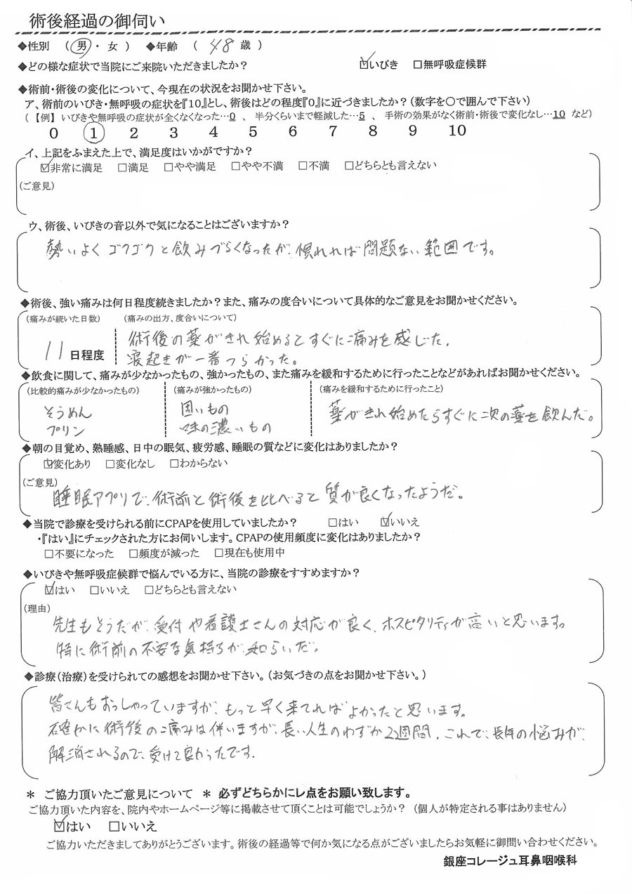 術後の患者様の感想 No.1659