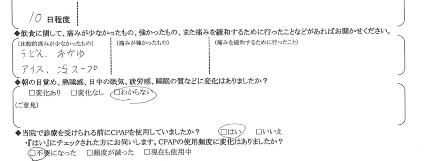 A:(痛みが少なかったもの) うどん・お粥・アイス・冷たいスープ