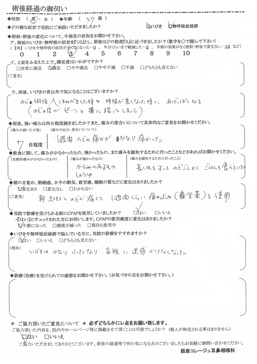 (理由) いびきはかなり小さくなり、家族に迷惑をかけなくなった。