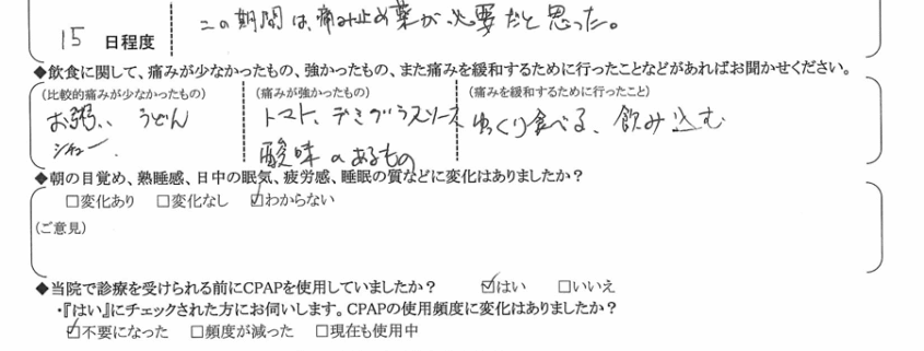 (痛みの程度について) この期間は痛み止めが必要だと思った。