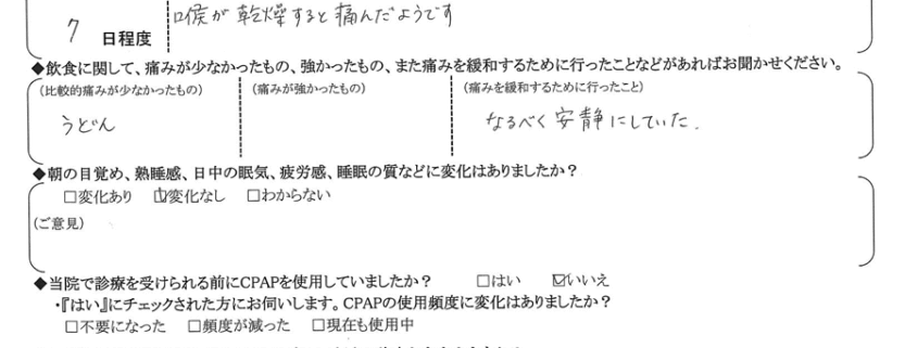 (痛みの程度について) 喉が乾燥すると痛んだようです。