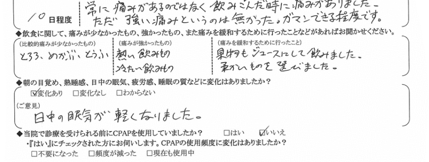 (ご意見) 日中の眠気が軽くなりました。
