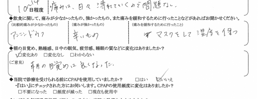 A:(痛みを緩和するために行ったこと) マスクをして湿度を保つ