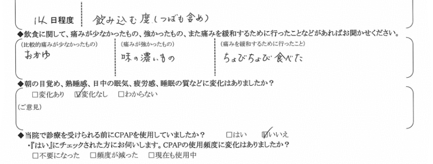 A:(痛みを緩和するために行ったこと) ちょびちょび食べた