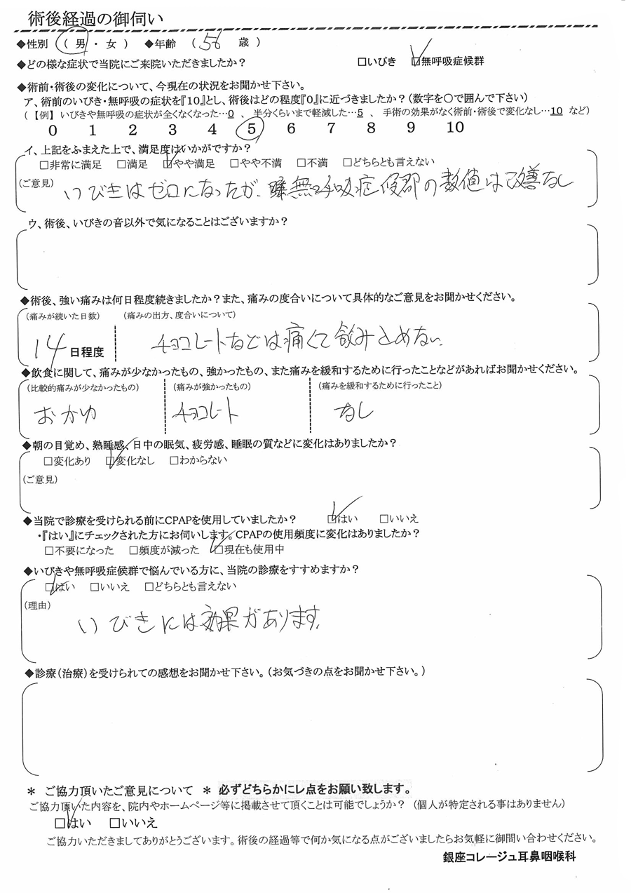 (ご意見) いびきはゼロになったが、無呼吸症候群の数値は改善なし。