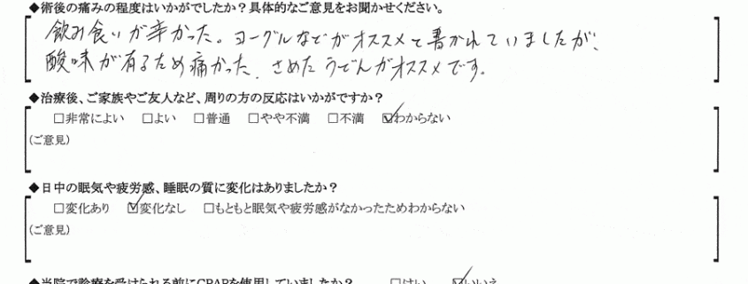 Q.診療(治療)を受けられての感想をお聞かせ下さい。