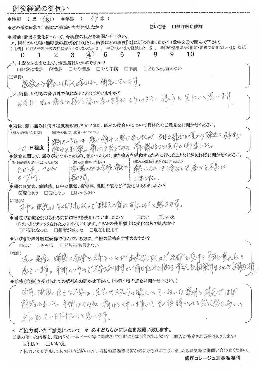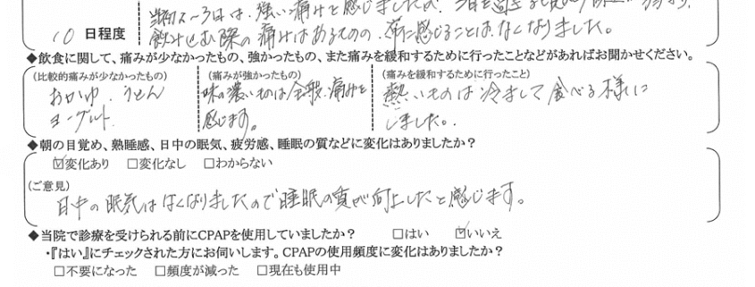 (ご意見) 日中の眠気は無くなりましたので、睡眠の質が向上したと感じます。