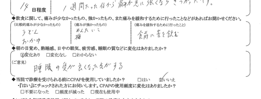 Q.日中の眠気や疲労感、睡眠の質に変化はありましたか?
