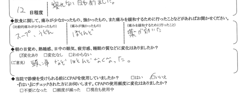 (痛みの程度について) 寝れない日もありました。