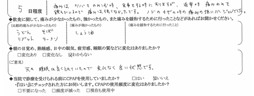 (ご意見) いびきが全くない日もあり、とても軽減しました。
