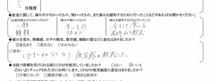 (ご意見) いびきをかかなくなり、疲労感が軽減した。