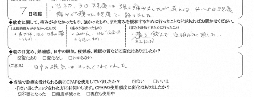 (ご意見) 日中の眠気は全く無くなった。