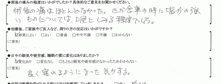 Q.術後の痛みの程度はいかがでしたか?具体的なご意見をお聞かせください。
