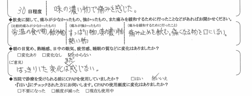 (痛みの程度について) 味の濃い物で痛みを感じた。