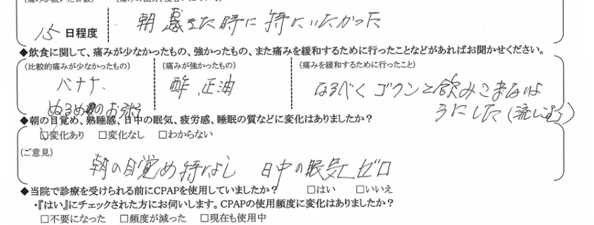 (ご意見) 朝の目覚め特になし 日中の眠気ゼロ